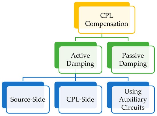 To compensate for the instability caused by CPL connected in cascaded systems, numerous methods have been proposed. These methods essentially rely on two basic concepts: passive damping and active damping as shown in Figure 7.