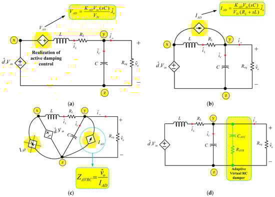 (a) Small-signal averaged model; (b) analytical interpretation of (a); (c) analytical represented in (b); (d) physical idea of AVRC damping [].