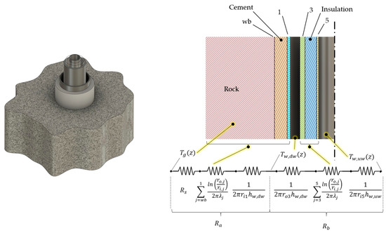 where Ra is the thermal resistance between the annular channel and the undisturbed ground temperature, and Rb is the thermal resistance between the annular piping and the upward pipe (Figure 1).