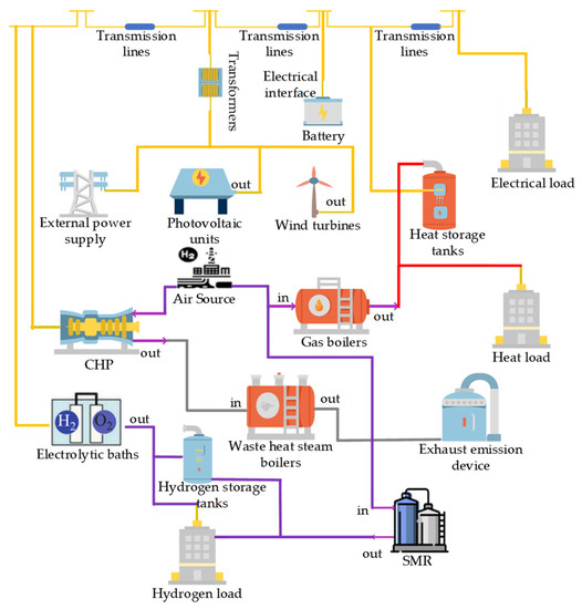 - Wang, Y.; Hou, K.; Jia, H.; Mu, Y.; Zhu, L.; Li, H.; Rao, Q. Decoupled optimization of integrated energy system considering CHP plant based on energy hub model. Energy Procedia 2017, 142, 2683–2688. [Google Scholar] [CrossRef]