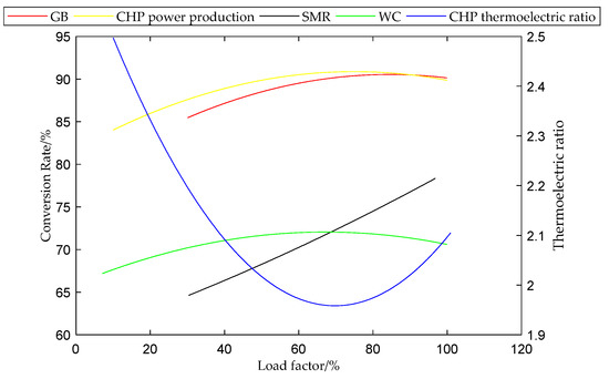 - Deng, S.; Wu, Q.; Jing, Z.; Wu, L.; Wei, F.; Zhou, X. Optimal capacity configuration for energy hubs considering part-load characteristics of generation units. Energies 2017, 10, 1966. [Google Scholar] [CrossRef]