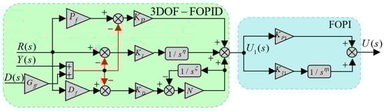 The dynamic performance of the multi-degree-of-freedom controller facilitates better suppression of system oscillations. The 3DOF-FOPID controller, in its traditional form, consists of three parts, which serve to increase the closed-loop stability of the controller and reduce external disturbances through the closed-loop response. The following equation gives the output response of the 3DOF-FOPID controller.