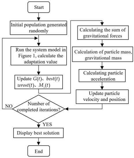GSA will update the particle velocity and position throughout the optimization search process and then calculate the gravitational force of each particle. After several iterations, the individual particles with higher masses will get better positions and keep gathering other particles. The optimal solution will be output when the number of iterations reaches a predetermined value.