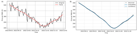 Evaluation considering 90 observations: (A) STL filter; (B) Prophet forecasts.