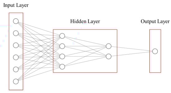 An artificial neural network model consists of an input layer, several hidden layers, and a final output layer. Each layer consists of several neurons. An example of ANN architecture is shown in Figure 1. Each neuron takes features and weights as input and provides a weighted output [], .