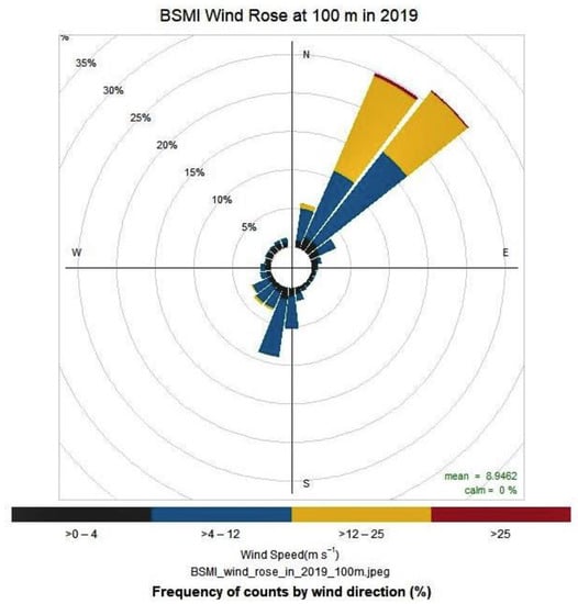 Wind rose at 100 m of BSMI met mast in 2019 [].