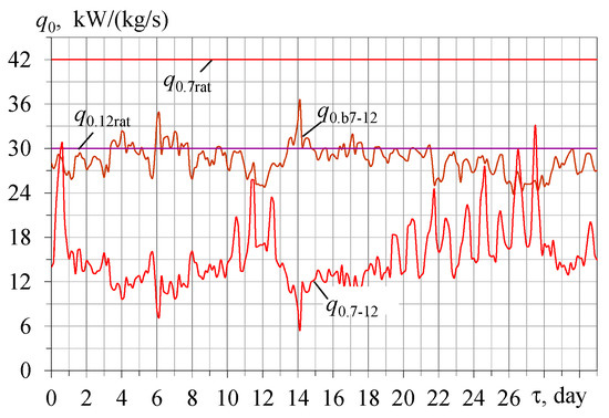Corresponding values of current level of load LLcur = q0.10˂0.5/q0.10rat/2 and monthly summarized LL = ∑(q0.10˂0.5 τ)/∑(q0.10rat/2τ) values are applied as indicative criteria. The value LL = 1.0 indicates the operation of SRC with maximum efficiency.