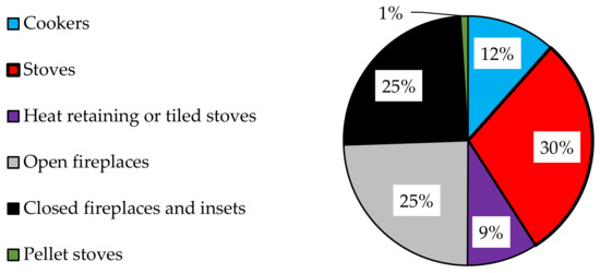 Firewood stoves, i.e., room heaters or chimney stoves, cookers, fireplaces/insets and slow heat release appliances or tiled stoves are widespread and popular for renewable heat supply in Europe (Figure 1) [1].