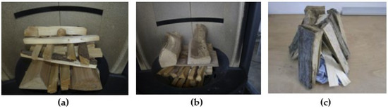 The arrangement of fuel is typically cross-joint for both ignition techniques. For the bottom-up ignition technique, the traditional campfire arrangement is also widespread (Figure 2) [10,11,23].