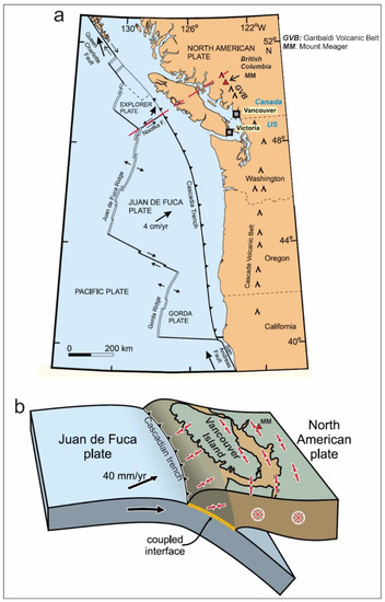 - Natural Resources Canada Plate Tectonics Shape (and Shake) British Columbia. Available online: https://earthquakescanada.nrcan.gc.ca/pprs-pprp/pubs/GF-GI/GEOFACT_plate-tectonics_e.pdf (accessed on 18 January 2023).