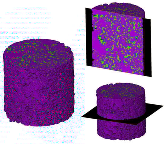 A tomography system GE Phoenix v|tome|x L 240 was used to obtain a 3D sample model of the distribution of fluids. Scans were completed using a nanofocus X-ray tube with a voltage of 100 kV, a current of 199 mkA, and a signal accumulation of 500 ms, which gave the resolution of 5 μm per voxel. During μCT scanning, a special X-ray transparent core holder, used during the whole experiment, was kept under a static confining pressure of 2.5 MPa and a pore pressure of 2 MPa.