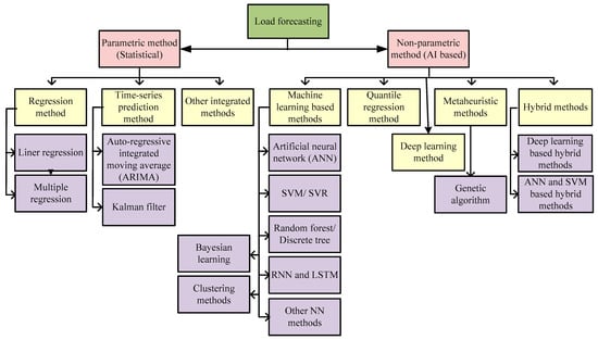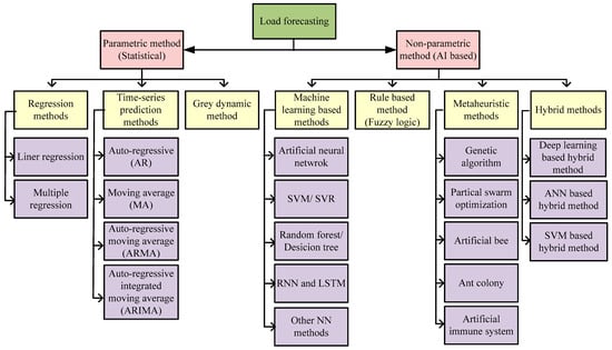 A variety of approaches are used in forecasting loads. Below are a few approaches that are well described for conventional and smart metering systems. In both systems, load forecasting models are categorized into parametric and non-parametric models. Since non-parametric (artificial intelligence-based) approaches forecast more accurately and are able to utilize non-linear parameters while learning, they have been employed more than parametric approaches [25,26,44].