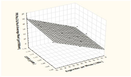 Results of average wear rates for PR No. 3 and 4 in all engine units, depending on COFR and the engine’s RPM (piston speed).