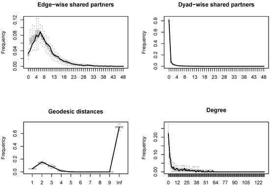 - Snijders, T.A.B.; Pattison, P.E.; Robins, G.L.; Handcock, M.S. New specifications for exponential random graph models. Sociol. Methodol. 2006, 36, 99–153. [Google Scholar] [CrossRef]