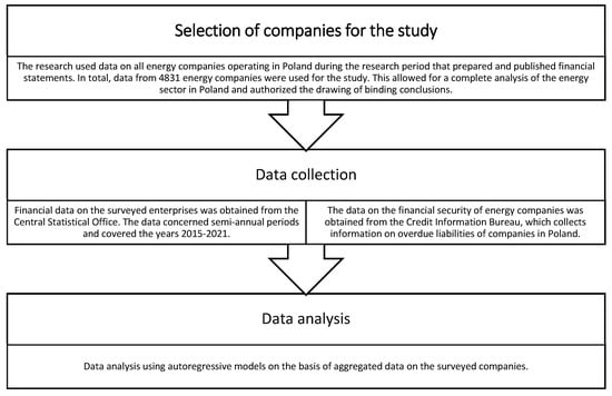 The analysis of factors determining the financial security of energy companies was carried out on the basis of data on the entire energy sector in Poland for the years 2015–2021 on a semi-annual basis. The data collected for analysis came from financial statements published by energy companies and from information collected by the Credit Information Bureau. In addition, macroeconomic data published by the Central Statistical Office and commodity market quotations on commodity exchanges were used. A detailed analysis of the data is presented in Appendix A. A great advantage of the conducted research is the size of the research sample, which exceeded 48 thousand enterprises at the end of 2021. This allowed us to draw binding conclusions for the entire population of energy companies in Poland.