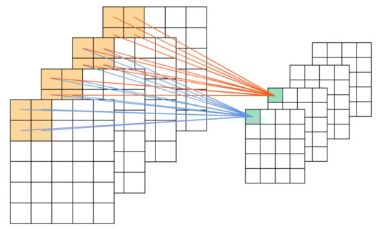 STCNN is convolved with a three-dimensional convolution kernel in both the temporal dimension and the spatial dimensions of width and height, so that the feature maps acquired by convolution contain spatial features of multiple consecutive frames, which means that the spatial features with a temporal dimension are learned. Three-dimensional convolution is achieved by convolving a three-dimensional kernel with a cube formed by stacking multiple consecutive frames together.