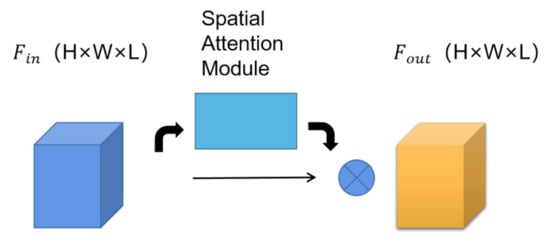 where denotes the input of the convolutional layer with the addition of the spatial attention module, and denotes the output of the input data after convolution; is the spatial information matrix obtained by the joint action of A and the weight matrix M; and B denotes the attention matrix, which helps the model to better target each sample for feature extraction.
