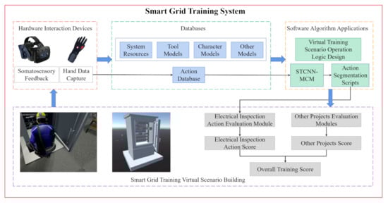 In the process of power operations, safety accidents caused by operational errors often occur, threatening the lives of front-line power workers. Increasingly, training which is costly or dangerous in reality is being conducted in a virtual environment. For example, VR training in medical-skills training can improve the technical skills of surgeons in orthopedic surgery, while saving costs [1], and VR training for skills training in hazardous scenarios can ensure the safety of trainers while learning basic fire-safety skills [2]. The smart grid-training system mentioned in this paper evaluates the standardization of trainers’ operating actions by conducting simulation experiments on the fine actions of power operation, which improves the precision of power workers’ operations and reduces the potential risks of man-made safety accidents.