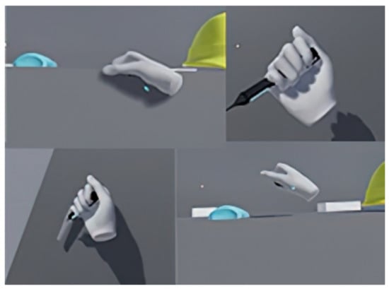 In the above, many existing methods are able to extract action features from video or continuous frame images. However, there are few procedures for processing data obtained based on data gloves to segment continuous fine actions in power operation. In grid-related training based on VR technology, human–machine interaction and data acquisition are performed by the data glove, which is shown in Figure 1. Although cloud models are widely used in several fields, there is no research on applying multidimensional cloud models to action recognition and action segmentation in virtual environments.