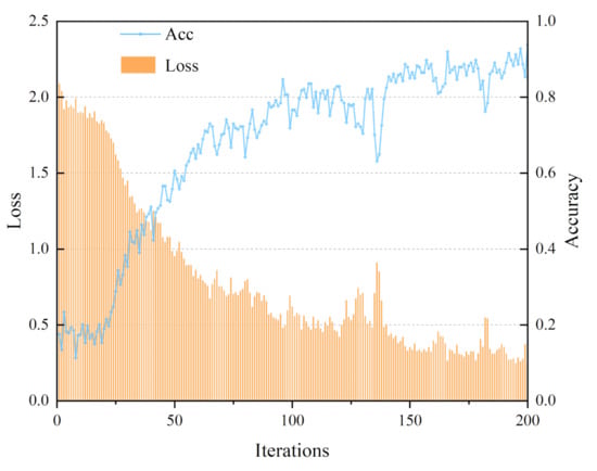 where denotes the hyperbolic tangent function, which represents the bias of this feature map; m is the index between the ()-th layer feature map and the current feature map; is the value of the position in the kernel connected to the m-th layer feature map; is the height of the kernel; and is the width of the kernel.