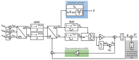 PLL structure improvement includes the phase-to-line voltage transformation to block the triple harmonics. The ADSC, which is not restricted to a specific time delay, blocks the DC offset and the MAF with a window length of one-sixth of the fundamental grid period to block the non-triple odd harmonics.