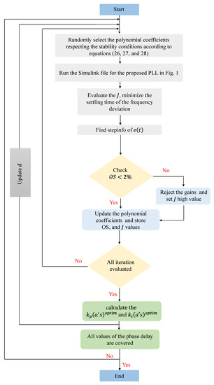 where is the window length, is the phase delay, and and determine the optimum parameter of the LF proportional-integral (PI)-gains. The optimization formulation is shown in (32). The flowchart that summarizes the optimization process is shown in Figure 5.