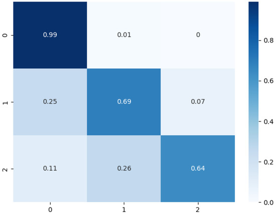 The trained feature extraction module-label classifier was used to make the prediction, and the confusion matrix between the outputs and the actual values was computed. In Figure 6 we show the well B’s confusion matrix. The model effectively recognizes mudstone. The class imbalance affected the prediction scores. The method would offer a better performance in a more balanced dataset.