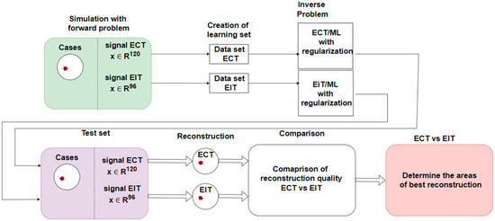 Simulation and comparison block diagram for electrical tomography methods.