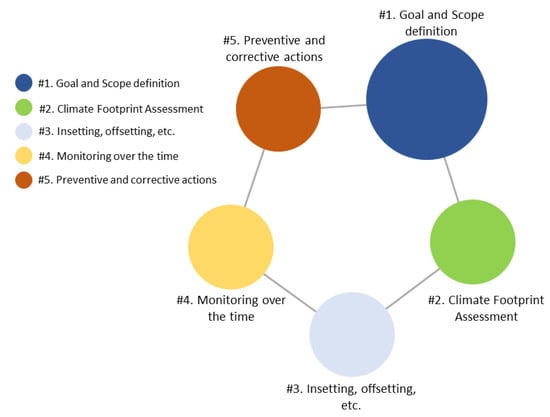 The authors propose a sixth approach, described in 2009 as “insetting” by Tipper et al. [] and most recently analyzed by Noor et al. in 2017 [] and Gallemore et al. in 2019 []. The approach is similar to offsetting (economic compensation), but in this case, the reduction of the CO2 eq emissions (benefits) is taken outside the immediate confines of the product system, i.e., neighborhoods, activities within the district not considered in the product system (e.g., mobilities), etc. Insetting, unlike offsetting, promotes explorations and partnerships to identify opportunities for emissions’ reduction within the sphere of influence of the district, real estate operator, residents, etc.