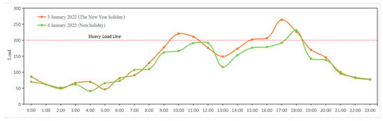 The load curve of a public transformer on New Year’s Day holiday and non holiday.
