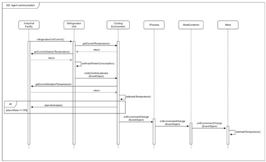 This paper utilizes agent-based modeling to promote the reusability of the agents across the domain, similar to [42]. As shown in the sequence diagram presented in Figure 2, the agent communication follows an event-driven observer pattern. Through the generic-agent interfaces, the agent behavior in response to, e.g., the refrigeration cooling-load, can be altered to utilize other methods or customized to the specific case study.