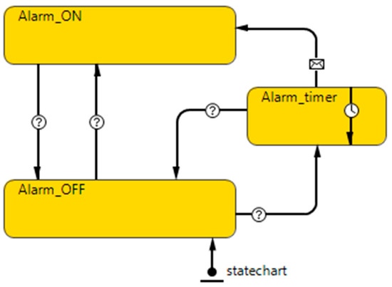 The production-environment agent adheres to the company’s temperature setpoints and restrictions. The state-chart representation of alarm behavior is shown in Figure 3.