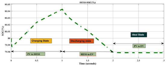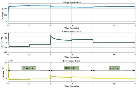 HESS is discharged to the EV load when and SEV are active while and Sb1 are inactive, as seen in Figure 7.