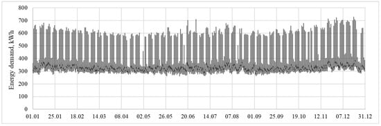 Hourly demand for electricity in building 7–hospital. Source: compiled on the basis of data obtained from the DNO operator. Anonymous data.