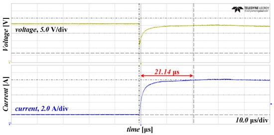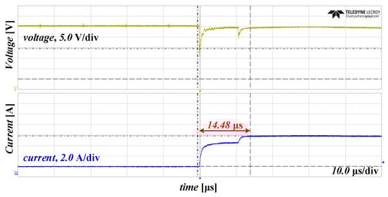 Here, the DC power supply could adjust the current reference (input current) to 100 ms, as the minimum transient speed in constant current mode. Figure 21 shows the good performance for the dynamic response, where the output current (pink trace) tracked the input current (blue trace) at almost same speed. In terms of accuracy, the maximum transient error was calculated as 2.72% during the partial shading condition.