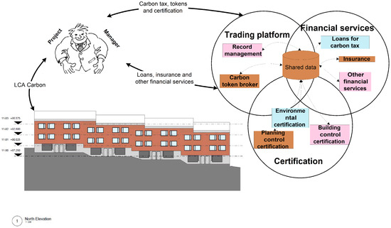 Contained in the platform are links to financial service organizations that specialize in managing carbon offsetting. These include (but are not limited to) loans, hedging against currency exchange exposure, insurance, current and savings accounts, and so forth. The lower-most circle in Figure 2 contains items associated with certification and licensing. These include planning permission, building control, environmental rating certification as well as machinery warranties, and professional service guarantees.