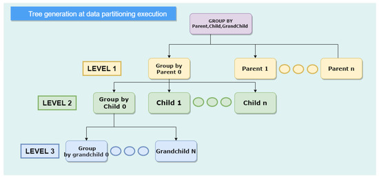 For this purpose, dynamic tree generation was implemented to create a new dataset following the parent–child–grandchild hierarchy. It should be noted that, deeper into the tree, the execution becomes less efficient. This permits the generation of new, specific datasets and focuses the experimentation on data with a more well-defined feature set. Finally, the module offers the possibility of defining where the generated dataset is stored and where the executions of the experiments are performed. The structure of this tree can be seen in Figure 2.