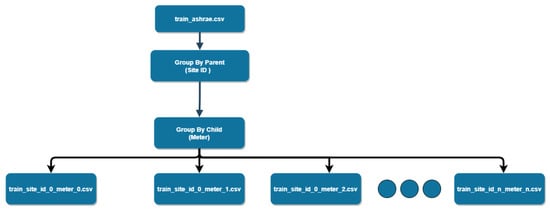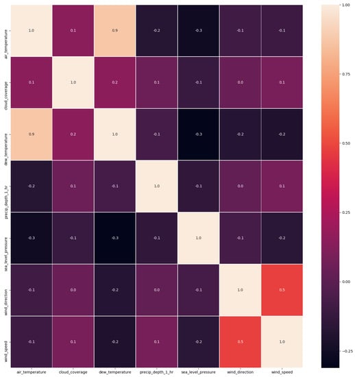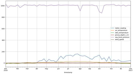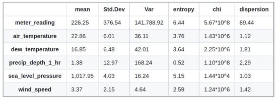 In this paper, we apply the proposed tool in an energy consumption problem. We obtained the data from the prediction features contest on the Kaggle platform called ASHRAE—Great Energy Predictor III []. The database comprised three years of hourly meter readings from more than a thousand buildings in different locations worldwide. It should be noted that the database belongs to ASHRAE, a large building technology association [].