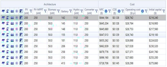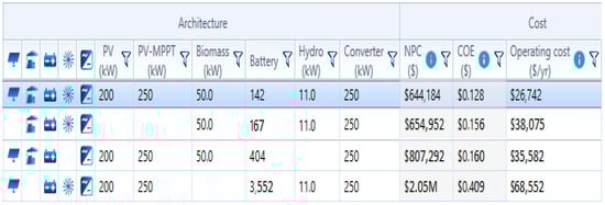 - The result also indicates that the most optimized combination reduces the pollutant emission of CO2 gas in the environment when compared with the battery/biomass/hydro system having the worst emission rate.