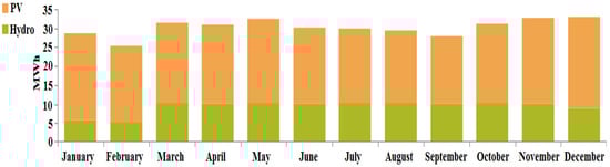 Hydro-electric turbines (HETs) are generally used for the extraction of kinetic-based energy from the water flowing in rivers. These turbines are competent for ingenerating power in slow-flowing water, causing no emission in the environment. The hydro-electric-based turbine generates energy  in kWh which is expressed by Equation (4) [], where  represents the time in hours for a particular day.