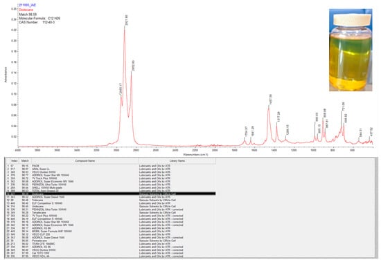 In the system for the arc plasma reaction experiment, gaseous nitrogen for arc plasma discharge and methane for reaction was quantitatively supplied by a Mass Flow Controller (MFC, Brooks). Figure 2 is the result of the FT-IR analysis of a typical waste plastic pyrolysis oil, and it can be seen that the oil is mainly composed of C9–C12 hydrocarbons. Therefore, in order to model the waste plastic pyrolysis oil, dodecane (C12H26, Sigma Aldrich, St. Louis, MO, USA), one of the main components of the pyrolysis oil, was chosen as a liquid fuel.