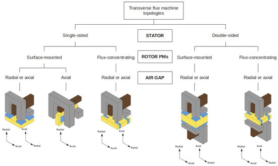 - Ballestín-Bernad, V.; Artal-Sevil, J.S.; Domínguez-Navarro, J.A. A Review of Transverse Flux Machines Topologies and Design. Energies 2021, 14, 7173. [Google Scholar] [CrossRef]