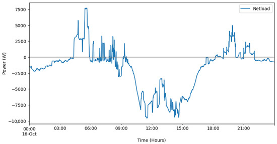 where is the demand in time t, and is the total production in time t. The net-load can take a negative value, a positive value, or a value of zero, as shown in Equation (2):