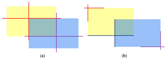 - Obtain the maximum value of at the upper left point and the minimum value of at the lower right point of the prediction frame and the target frame, find the difference and obtain the two sides of the intersection area, respectively, multiply them together and obtain the intersection value of the prediction frame and the target frame, as shown in Figure 8a;