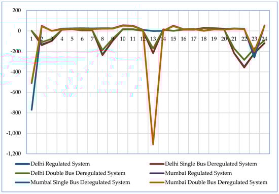 where = LMP at time ‘t’ at the i-th bus, power generation cost of the thermal unit, and X, y, and z are coefficients of the generation cost. The ICR, or imbalance charge rate (surplus or deficit), to MCP ratio is used to indicate the imbalance cost coefficient or ‘’. In the present work, the value of ‘’ is considered as 0.9.