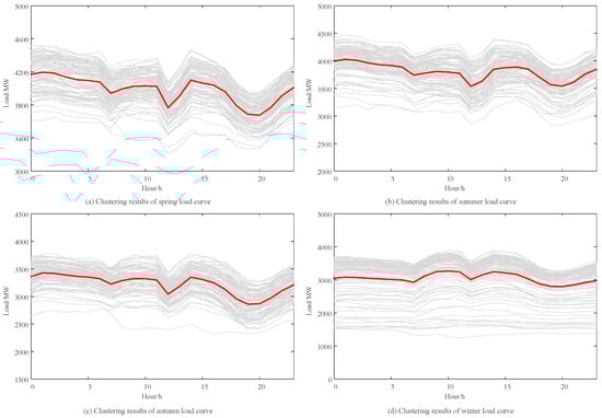 The clustering of typical daily load curves in four seasons is shown in Figure 2.