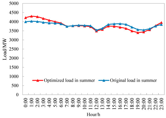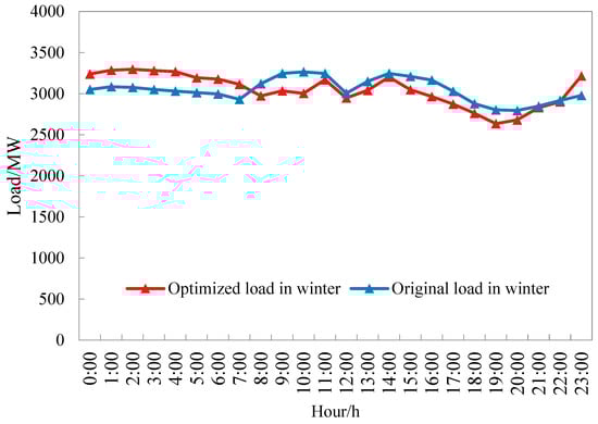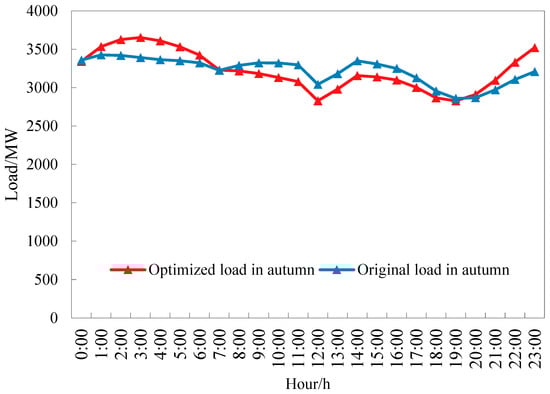 First, the price elasticity coefficient of industrial users’ electricity demand in autumn was calculated, as shown in Table A3. Then, the TOU tariff and load optimization results in autumn were calculated, as shown in Table 6 and Figure 5.