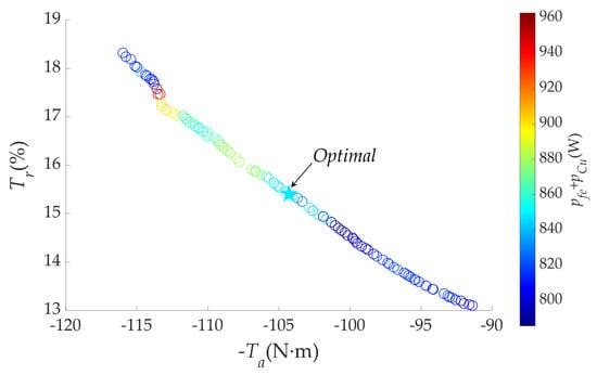 where x is the optimization variable, and the value ranges of the optimization variables are shown in Table 2. The constraint conditions are −Ta, Tr, and pfe + pCu, which are smaller than the −Ta, Tr, and pfe + pCu of an initial motor, respectively: