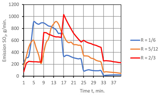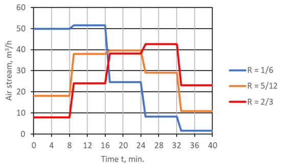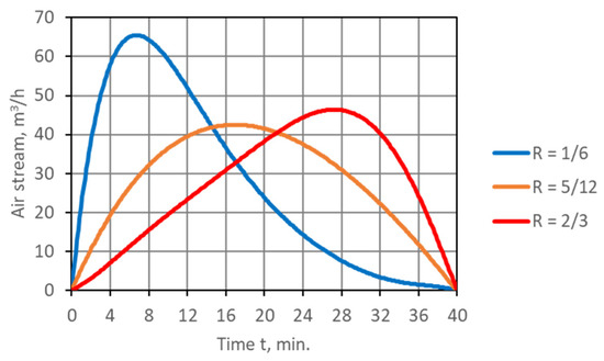 - For the assumed value of R, the air stream distribution in time was determined in line withEquation (2) (Figure 3).