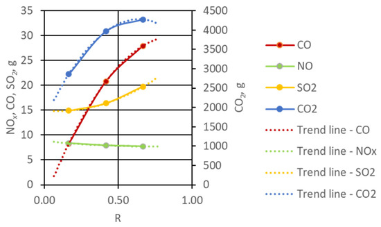 3.2. Total Emissions of Gaseous Combustion Products